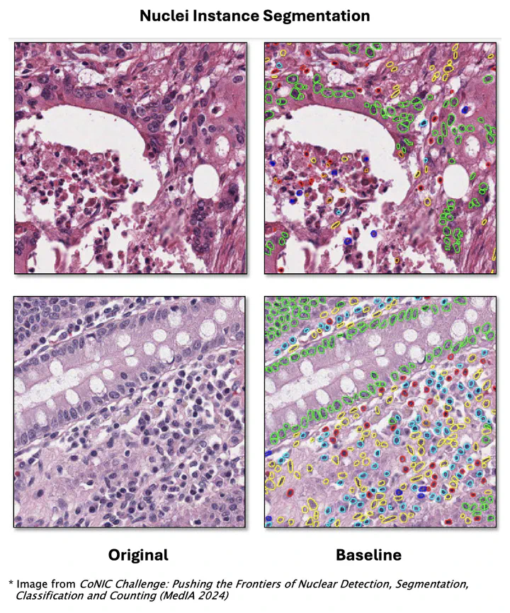 Nuclei (grain) segmentation and classification is the first and most crucial step utilized in many different microscopic medical image analysis applications. However, from a deep-learning perspective, it proves to be a non-trivial task and suffers from many problems such as the presence of small objects, class imbalance, and having fine-grained differences between the different types of nuclei. In this paper, we introduce several contributions to tackle these problems. Firstly, we use the recently released ConvNeXt to replace the backbone of HoVer-Net to leverage the key components of transformers in a convolutional neural network. Secondly, we use a multi-channel color space-based approach to enhance the visual differences between nuclei to aid the model in extracting distinguishing features. Thirdly, we use a Unified Focal loss (UFL) to tackle the problem of background-foreground imbalance. Finally, we use a Sharpness-Aware Minimization (SAM) optimizer to improve the generalizability of the model. Overall, we are able to outperform the current state-of-the-art model, HoVer-Net, on the preliminary test set of the CoNiC Challenge 2022 by 12.489% mPQ+.