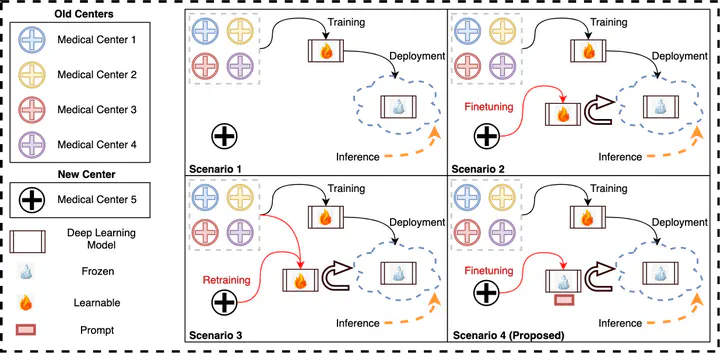 Prompt-Based Tuning of Transformer Models for Multi-Center Medical Image Segmentation of Head and Neck Cancer